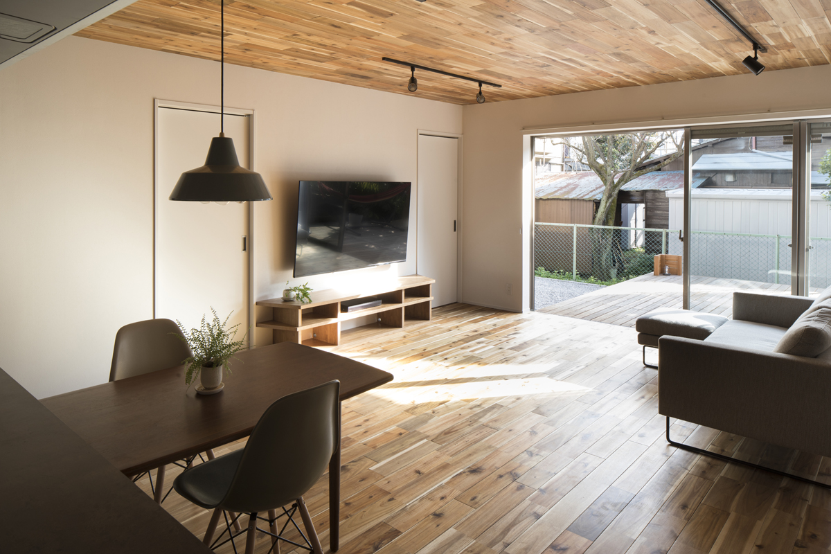 所在地 東京都武蔵野市 用途 共同住宅の一区画 工事種別 改修工事 敷地面積 - 建築面積 - 延床面積 83.28㎡ 構造 鉄骨造 階数 3階建ての1階 竣工 2019.09